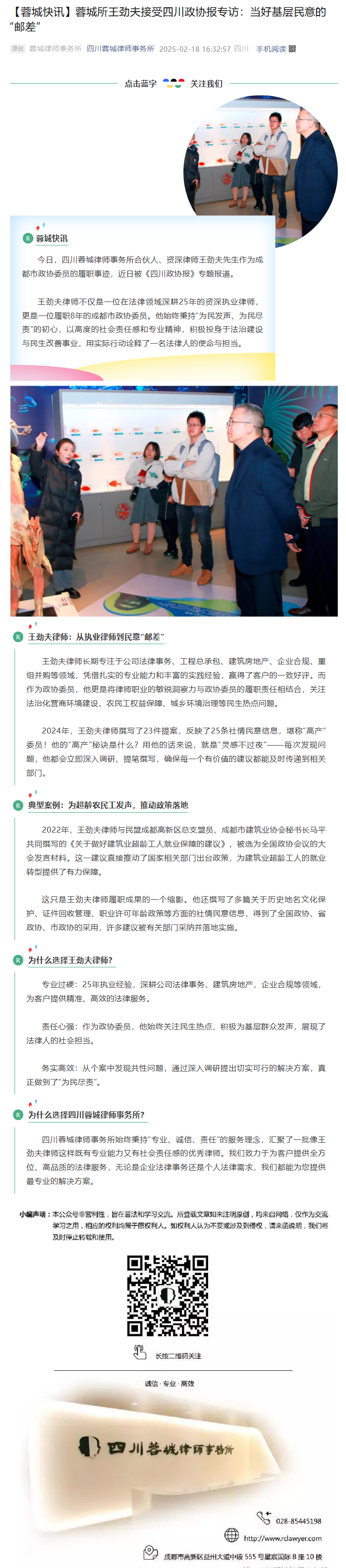 【蓉城快讯】蓉城所王劲夫接受四川政协报专访:当好基层民意的“邮差”